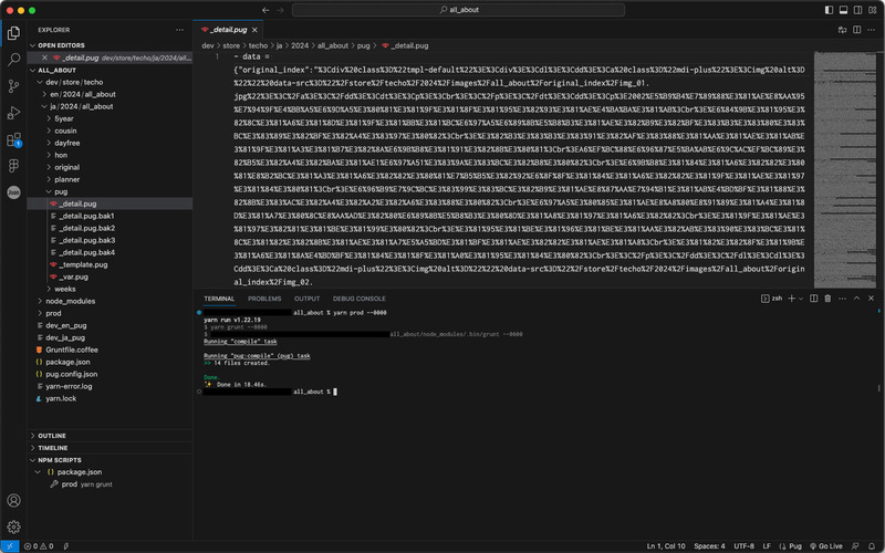 ページに仕上げている様子。ファイルを編集して、コマンドをうって仕上げます。