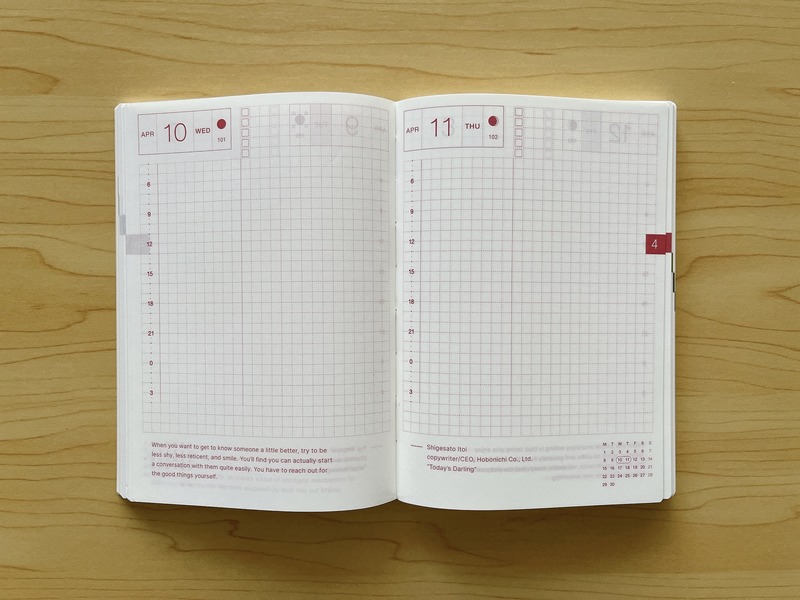 ▲1日ページのデザインは、旧暦が掲載されていない分、日本語とちょっと違います