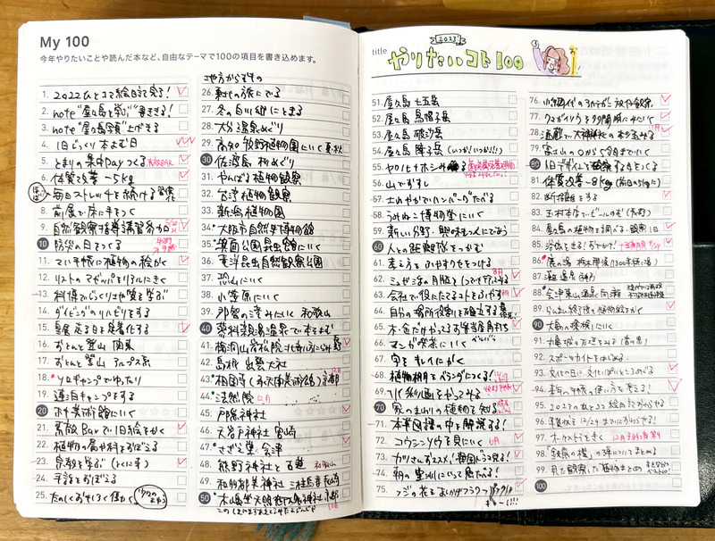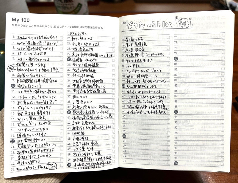 2023年の1月1日に書いたリスト。去年できなかったことも継続して書いてるので半分より少し多め。