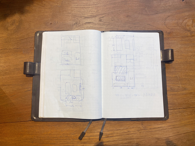 手帳に家の間取りを書いていました。