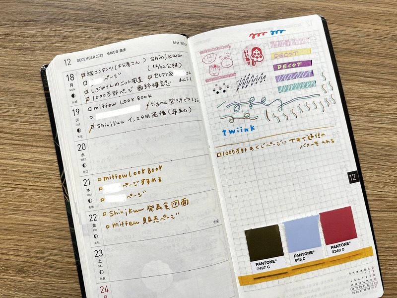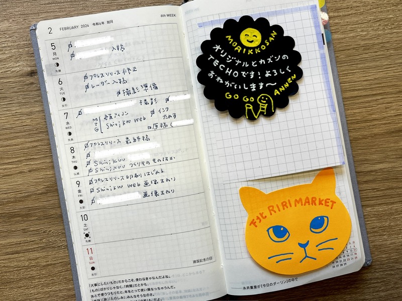 ことしの手帳。右ページにはもらったふせんを貼ることも。
