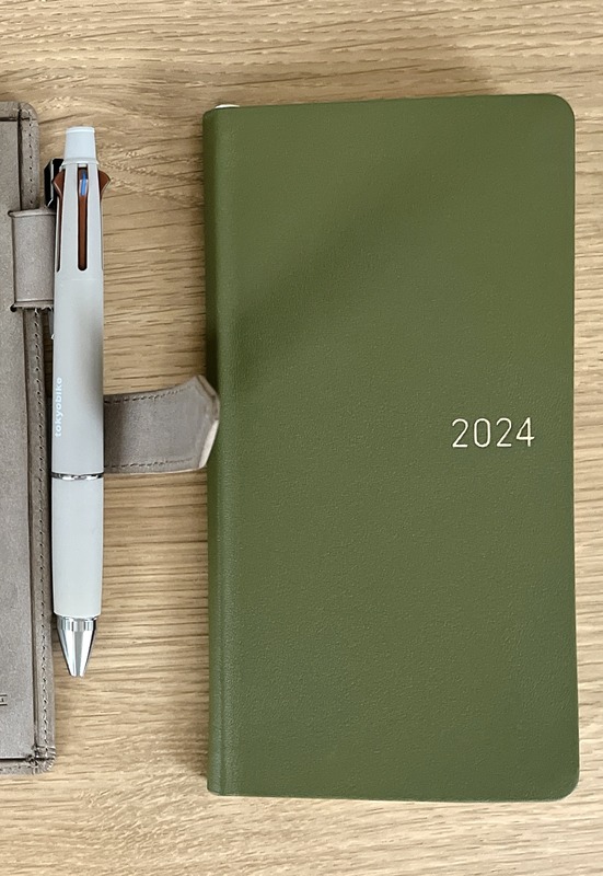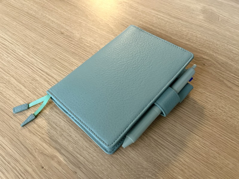 ▲Water greenのカバーといっしょに。ペンの軸の色もカバーにあわせて選んでいました。かわいい!