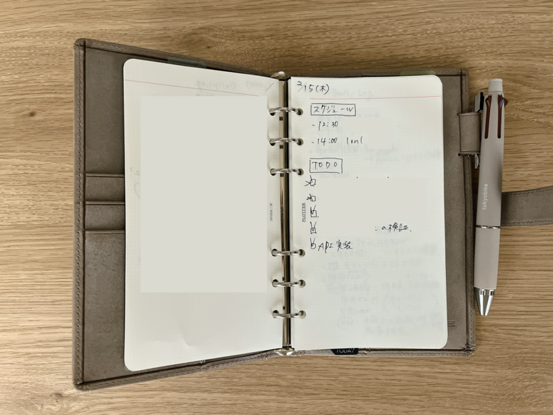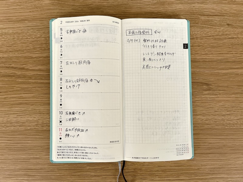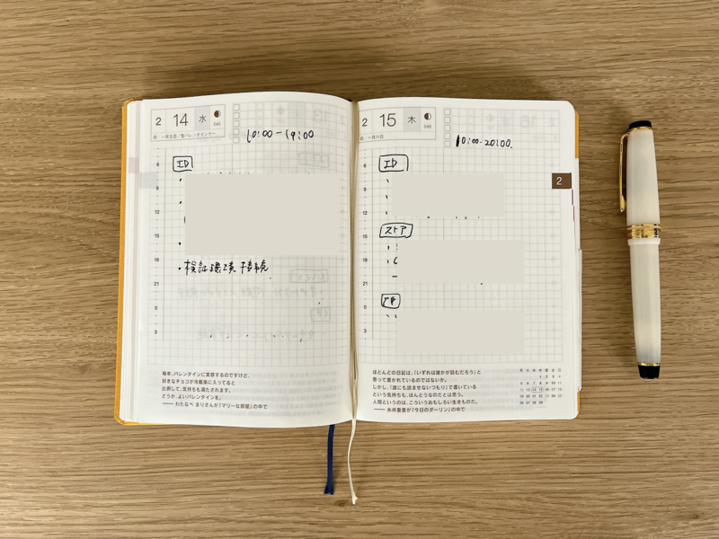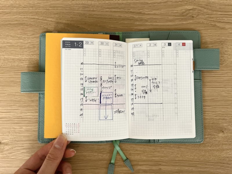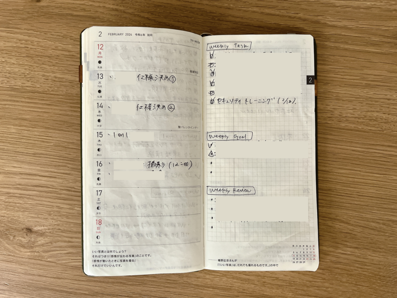 ▲2月はシステム手帳を活用。ここでもカバーとペンの色を統一!