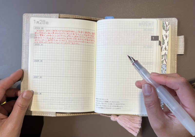 ▲ちょうど切り替わりのタイミングで、今年は1年目。使っている万年筆はKawecoのもの。