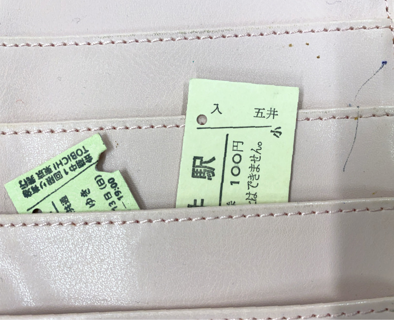 ▲電車好きのやまかわさん。ポケットに切符が入っていました。