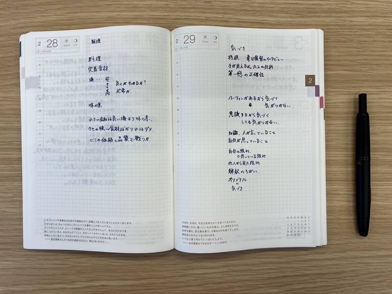 日付けやカレンダーのない方眼ノートがしっくりきたようです。