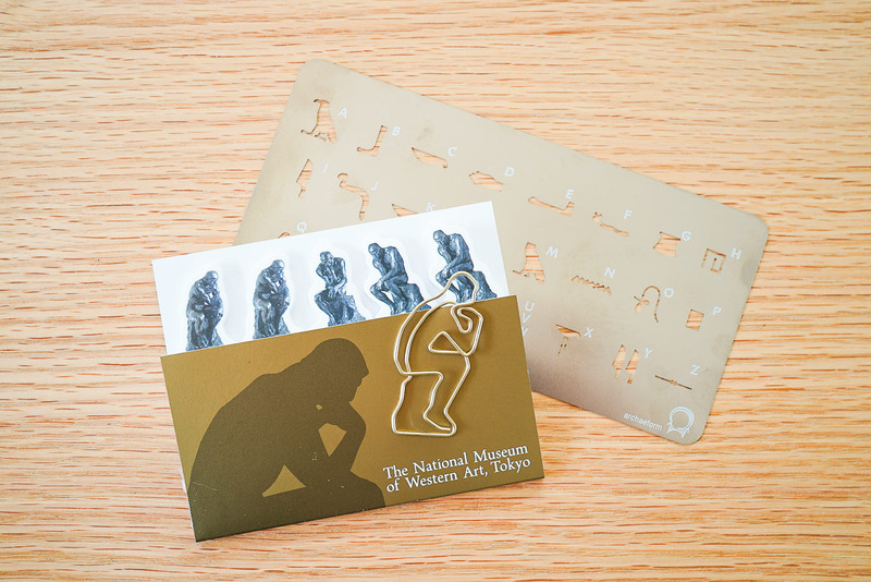ロダンの「考える人」をモチーフにしたクリップと付箋、