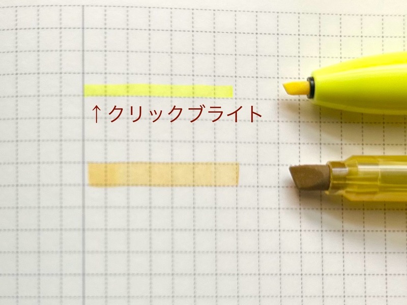 △上がクリップブライト、下がよくある蛍光ペン。明らかに細い!