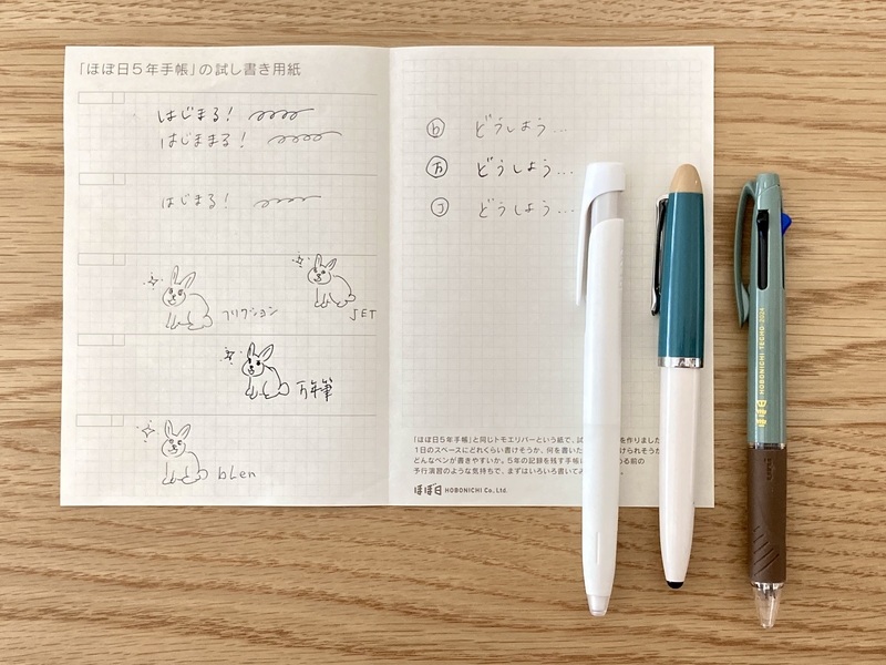 愛用の3本のペンの書き心地をチェック。