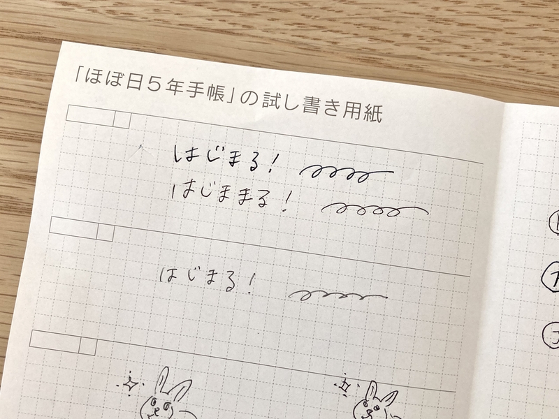 まずは5年手帳に同封されている試し書き用紙に