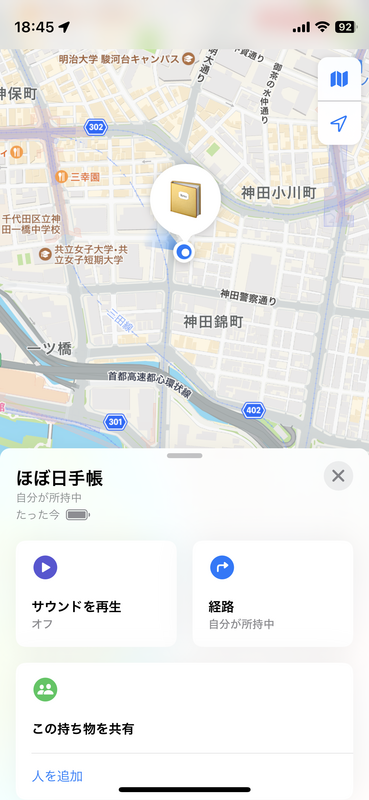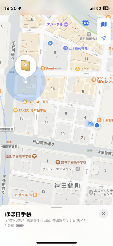 ▲置き去りのままコンビニに来ました。会社の位置で情報更新されてるようです