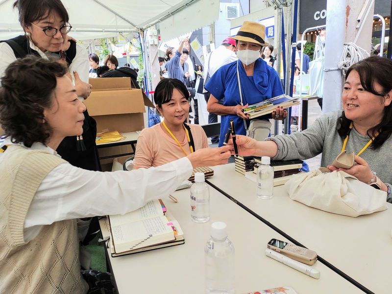 本を抱えながら隣で聞き入る方もいらっしゃいました。