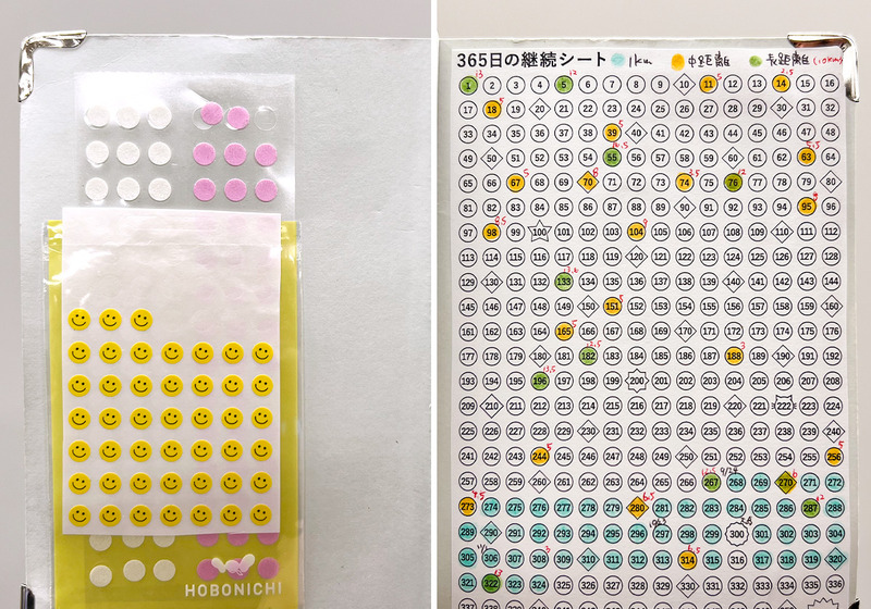 青は運動などの記録、赤は1日の歩数、黒は食事などのメモです。