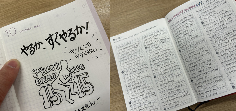 ▲「スクワット15-15」の扉に、My100「アカデミー賞リスト」