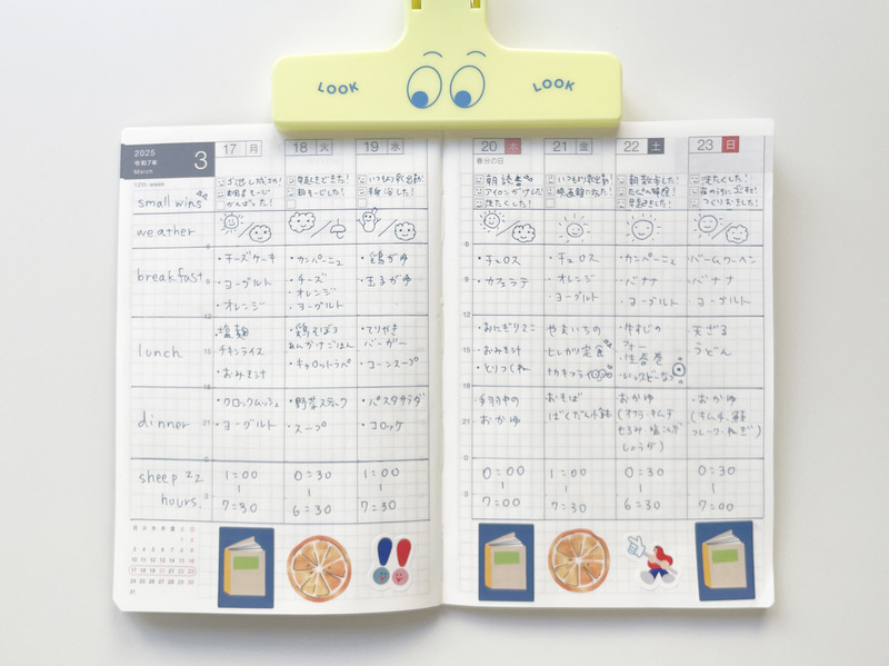 1日ごとに3つの「チェックボックス」と「24時間の時間軸」もあります。