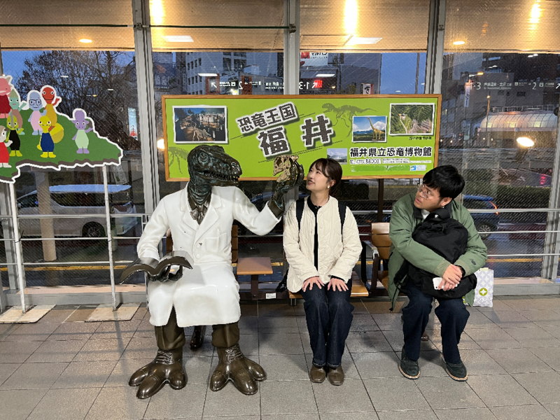 福井駅には、恐竜のモニュメントが