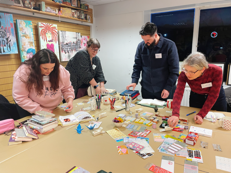 スタンプやマスキングテープを広げると、