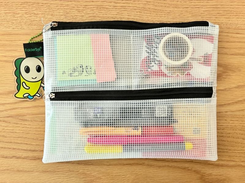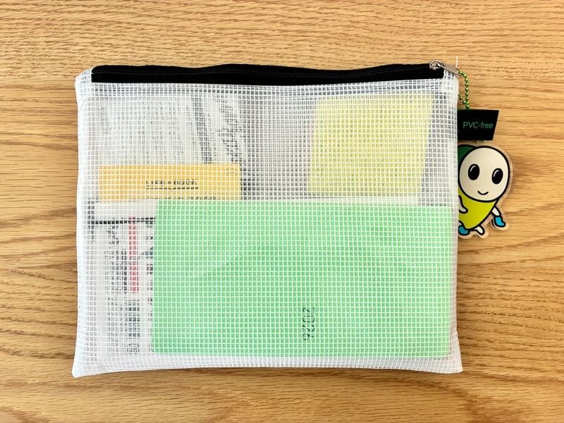 手帳や文具を収納している透明ポーチです。