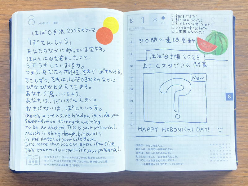 The theme for the Hobonichi Techo 2025 is gPotential.h For this Techo News series, team members will be writing about their take on the gpotentialh of the Hobonichi Techo.