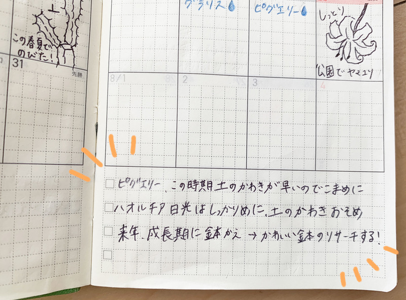 I had grown attached to these plants, and felt this urge to not let them die so I started using the Hobonichi Techo to manage their watering schedules.