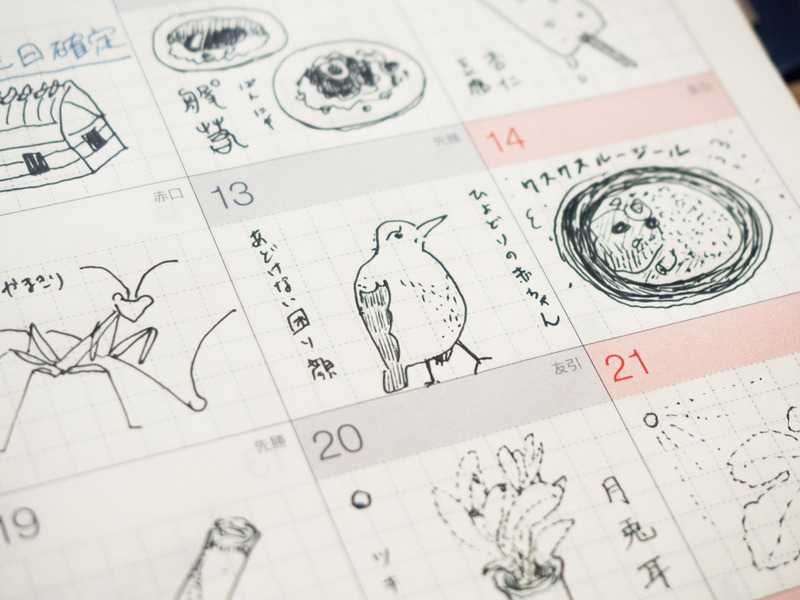 Ifm able to have fun with a peace of mind. The monthly calendars are lightly printed with a grid design, so I can draw neatly without having to worry about the overall balance of the illustration. This allows me to have fun freely.