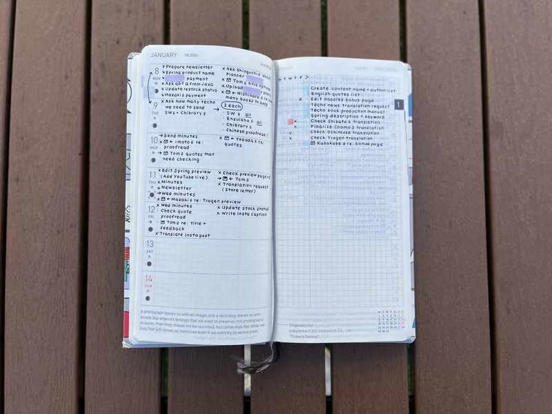 Hello, Ifm Higashi, and I manage the Hobonichi Store as part of the Techo Team.
