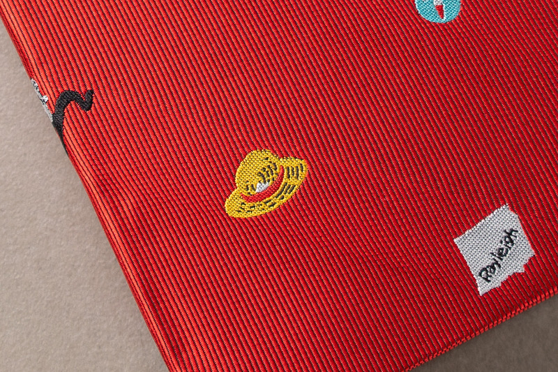 Itfs actually made with woven necktie fabric by Bow & Tie.