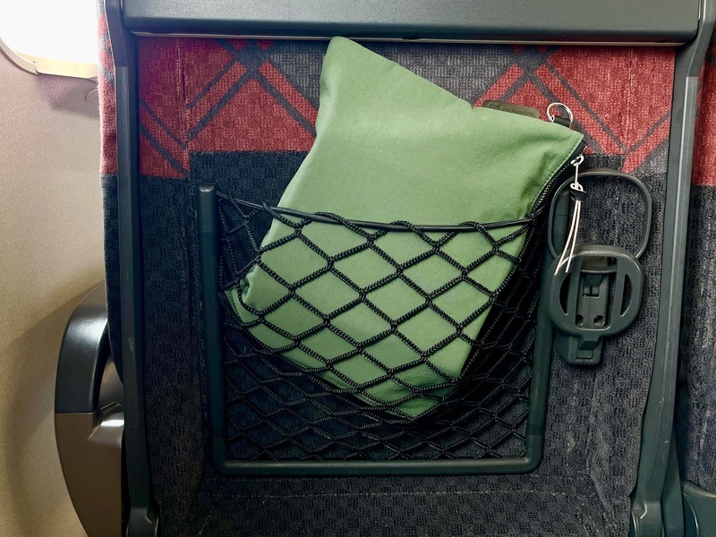 In the large pocket: HON and a pen, a Kindle, and an eye mask.
