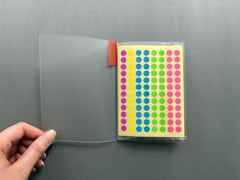 On the right, I added stickers that already came with small backing sheets. These kinds of stickers tend to fall to the bottom of bigger folders and are hard to reach, but this case keeps them easy to grab.