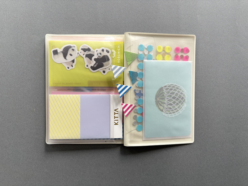 Bottom left are flake stickers. If you just toss them in, they fall out everywhere, so I put them in a card-size gAdd-on Pocket.h