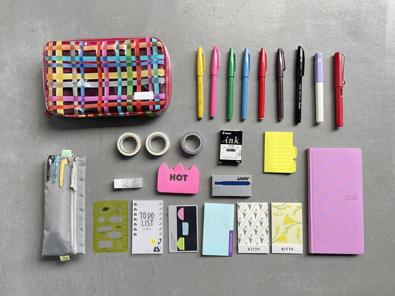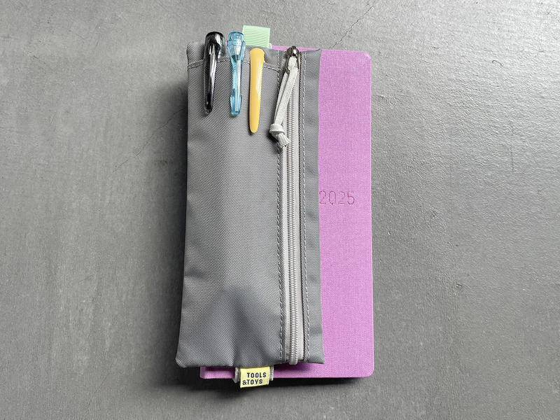 One thing that felt especially useful was putting my go-to stationery into the "Flat Pen Case comodo," and then just slipping the whole case into the pouch.