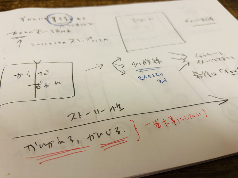 Top left, I stuck some stickers from snacks I had onto a backing sheet I cut myself. We often get tasty snacks at the office, and I like to paste the stickers into my techo at home [ but I needed a little spot to keep them in the meantime.