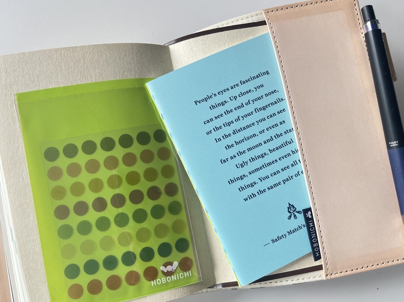 Theyfre all a bit smaller than the Original (A6) size, so they fit perfectly tucked inside the Hobonichi Techo Original.