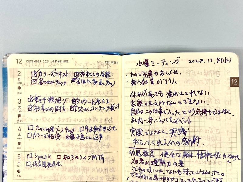 Ifll write my to-dos on the left side of the weekly spread and use the right side for meeting notes. I also plan to jot down notes from Hobonichi School talks and Itoi-sanfs conversations here.