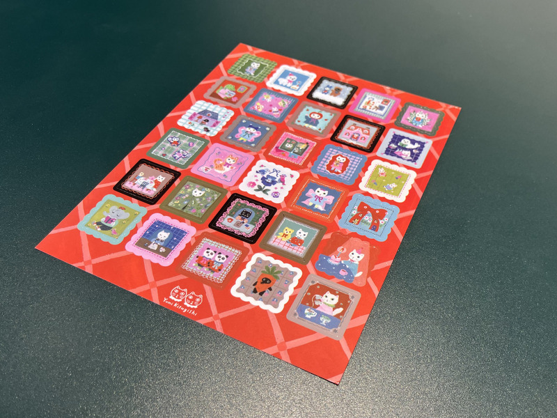 Up until now, everything Ifve chosen has been in conjunction with my techo, but this is different. This onefs purely from the heart—I couldnft resist getting Yumi Kitagishifs stickers. There are 30 different illustrations! Isnft that amazing? Even the red background sheet looks adorable.