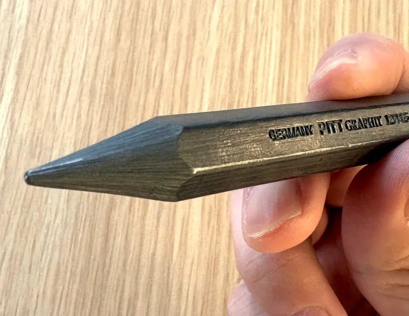 The Faber-Castell gPITT GRAPHITEh (the barrel is marked with the German gGRAPHITh). First off, look at itc itfs irresistible, isnft it? While a normal pencil is encased in a wooden barrel, this pencil is made entirely out of graphite. That lustrous charcoal grey is simply beautiful.