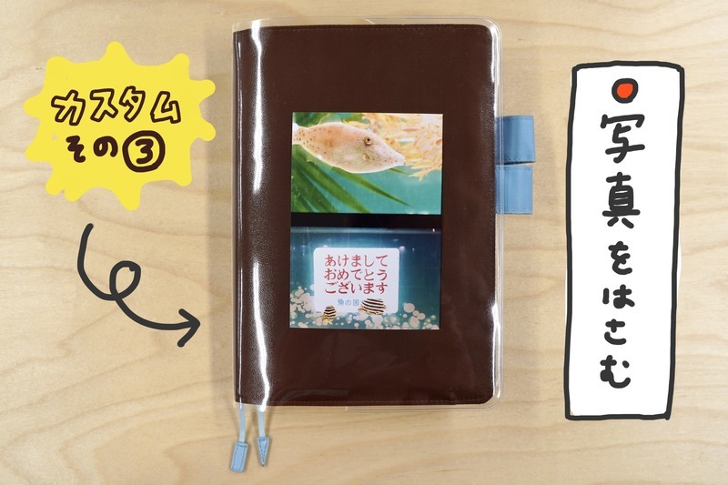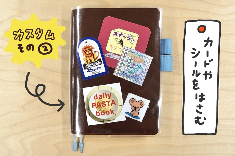 By putting on a Cover on Cover, you can slip things in between the cover, so you can customize it as freely as you like. I have a habit of collecting things, so I have a bunch of cards and stickers. Slipping them in between the cover at random makes it look nice.
