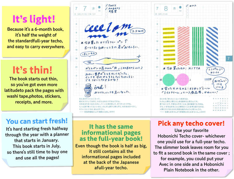 Starting yesterday, June 1, the Hobonichi Techo July Start Avec book is available for sale! The Hobonichi Techo Avec is a daily planner thatfs split into a 2-book set, with each book spanning 6 months. The July Start Avec spans from July-December, and you can buy it on itfs own!