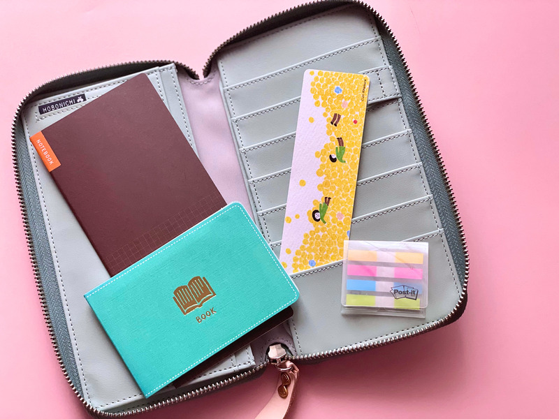 I love to read, but whenever Ifm out and about, I always find myself looking for bookmarks, sticky notes and memo pads to write down words that struck me. Which is why I thought of putting all of these in a compact Weeks cover.