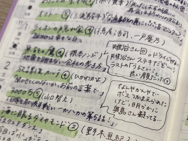 Including the title and subtitle helps me remember the plot of each episode. If I run out of space, I jot down more thoughts on the right-hand memo page. Oh, and Kijitani-sanfs final expression? So good!