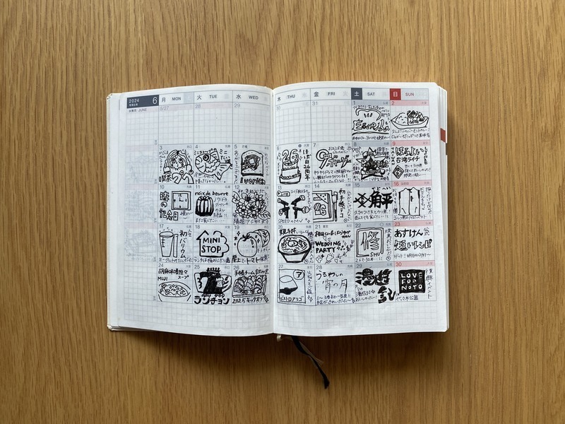 For the HON A6 Size, I chose the colorful, retro-style Bijutsukai (Rainbow) by Unsodo. Ifve been drawing a monthly illustrated diary this year, so I plan to continue in 2025!