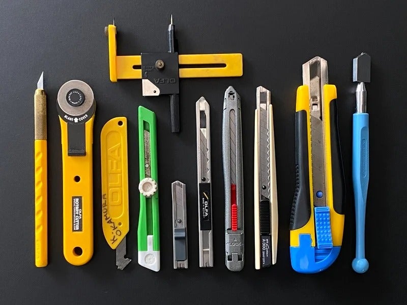 Even now, I still use a utility knife to sharpen my pencils. I also use them to unpack deliveries or cut the plastic twine when bundling up cardboard for recycling. Given the nature of my work, Ifm constantly using a knife?to cut printed cards, posters mounted on foam board, and sometimes special materials like plastic. I have a certain sentimental attachmental to them; I even still own some that I bought back in elementary or middle school.