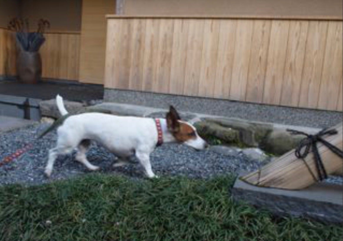 旅館の庭をトコトコトコトコ楽しそうに歩いていました。