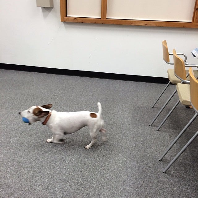 2013年11月20日、ほぼ日に行った時にブイヨンが遊びに来ていて、口いっぱいにボールを加えてトコトコトコトコ楽しそうに歩いていました。