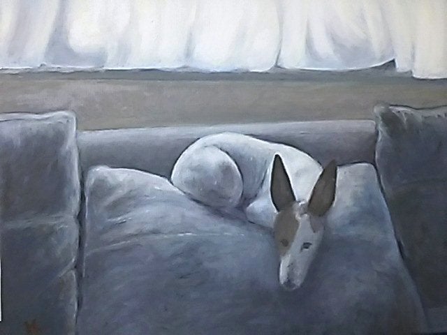 ちょっと変則なのですが…。サイトにアップされるブイちゃんの写真が毎日楽しみで、全体的な雰囲気がとても素敵だった1枚をもとに、勝手に油絵を描かせて頂きました。2015年7月のことです。なのでこれは、写真をもとにした油絵の写真ということになります。描いていて、とても楽しかったです。ブイちゃん、ありがとう。