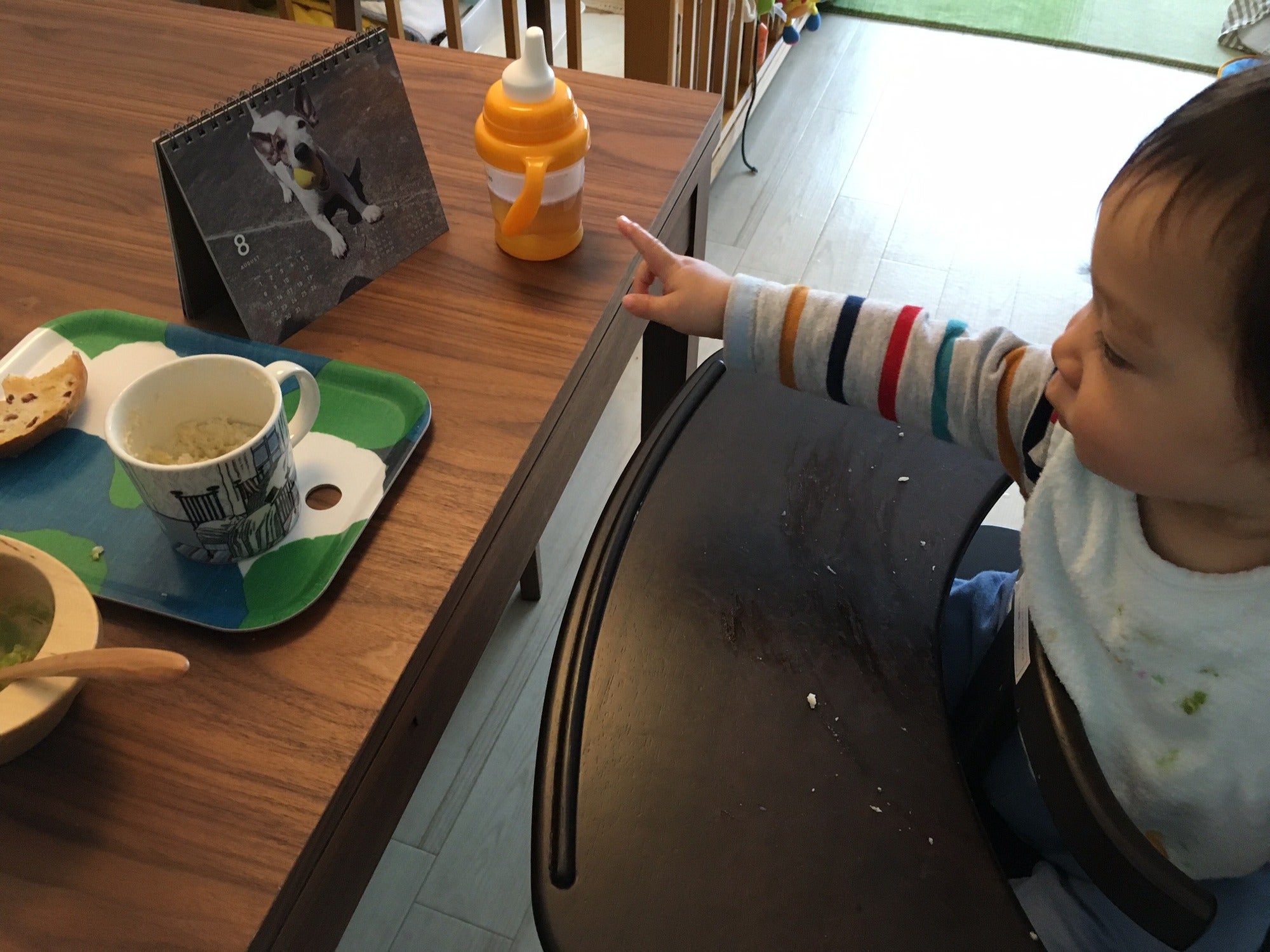 離乳食の頃から、息子は机の上のブイちゃんと一緒にごはんを食べるのが大好きです。