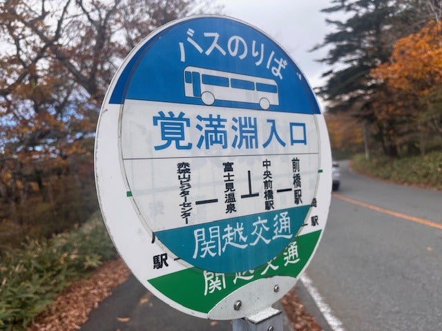 「覚満淵入口」のバス停で降りたら、