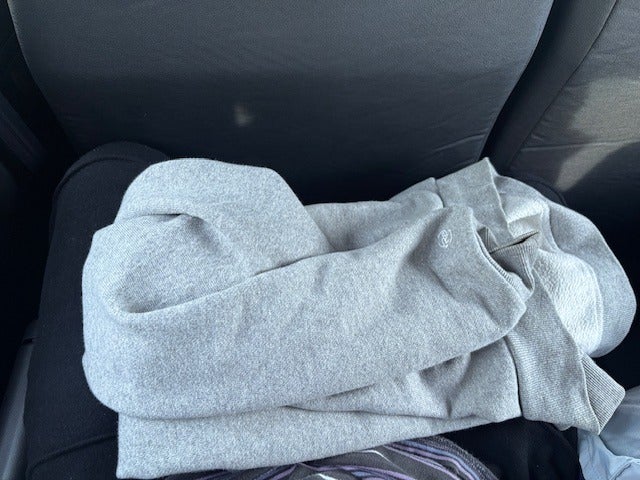 車内で一枚脱いでしまいました。