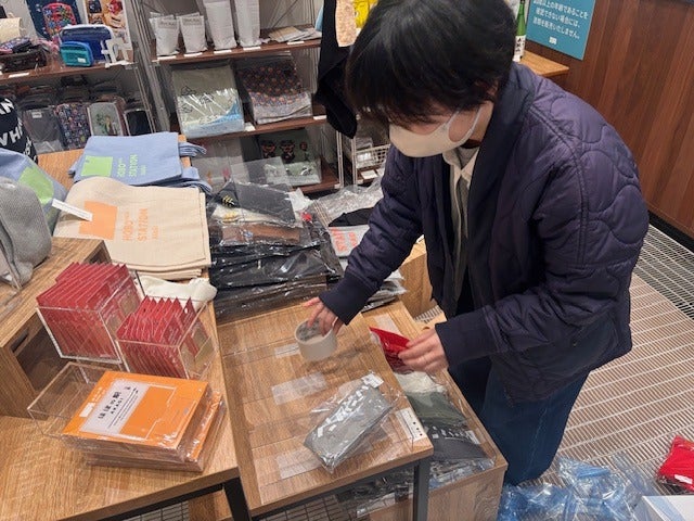 乗組員・さかもんが売り場作り中。