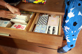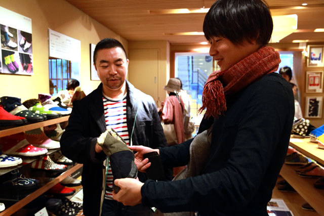 たっぷりお話をうかがって、 いろいろなものを見せていただき、 大満足の取材が終わったあと、チーム一同は、 脇阪さんがデザインを手がけている 京都のお店「SOU・SOU」さんへ。 脇阪さんのデザインしたテキスタイルをつかった 「地下足袋」を購入して、 ほくほくと東京にもどりました。 |